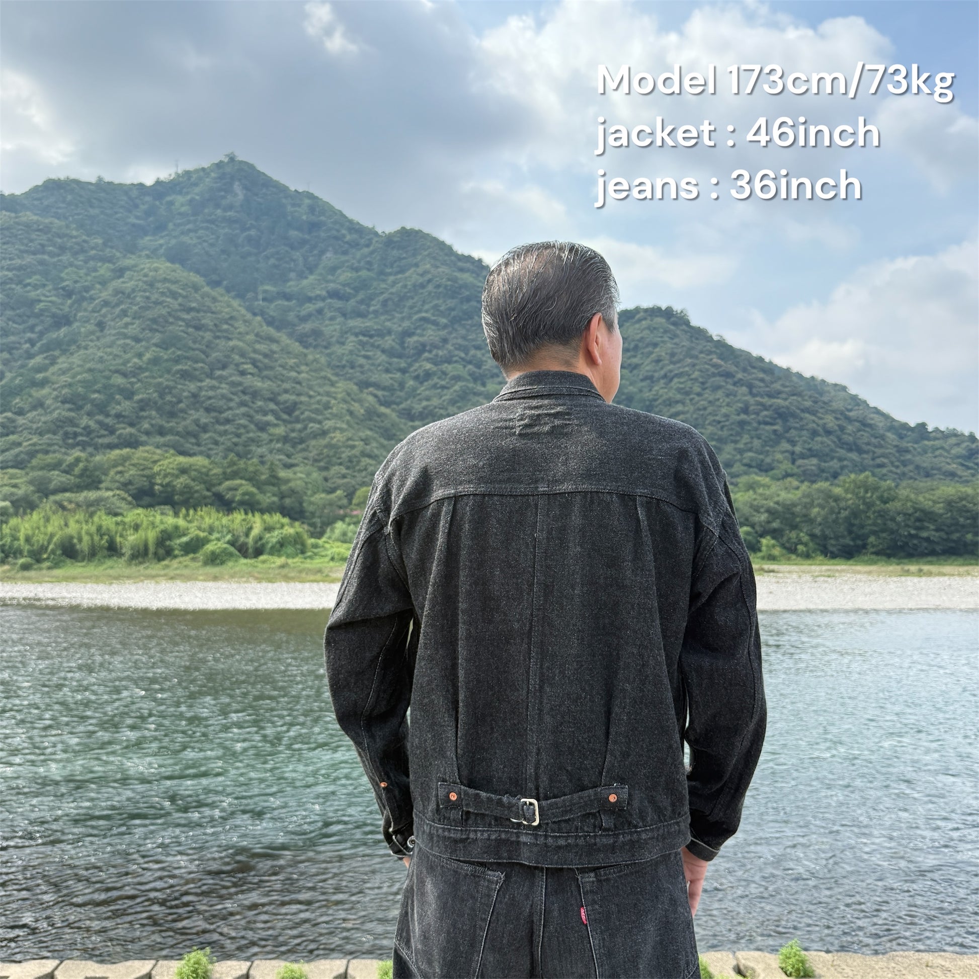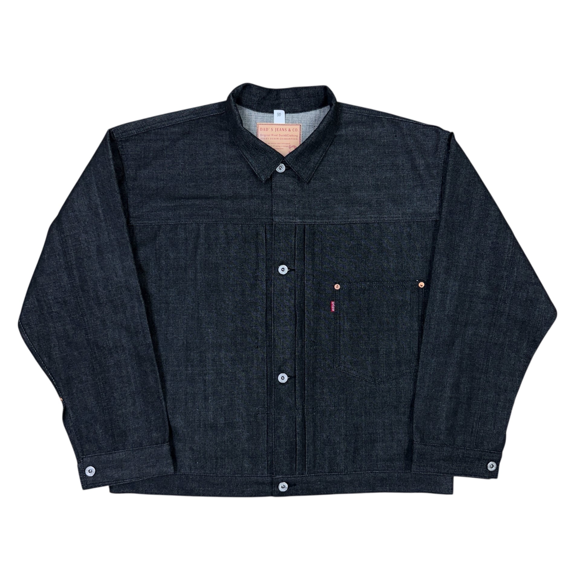 大戦モデルをベースにしてブラックデニムで作るとカッコイイのでは?との発案で研究を重ねながらオリジナルで再現しました。型は1944年の大戦モデルがベースの型となっております。